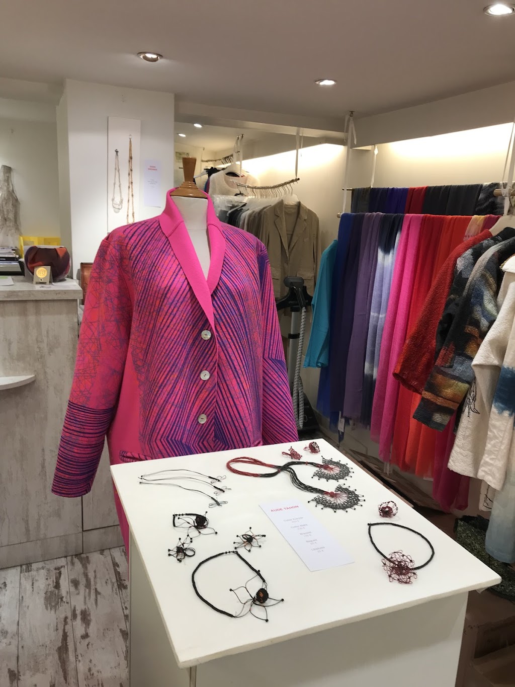 De passage à Paris, j'ai pu admirer dans cette jolie boutique ,le travail de la créatrice Barbara Platte... J'ai craqué sur une très belle étole en laine et soie et j'avoue qu'il est assez rare de trouver des pièces aussi belles ( fibres naturelles) et de fabrication française. Je recommande cette boutique dans laquelle la vendeuse est une passionnée !