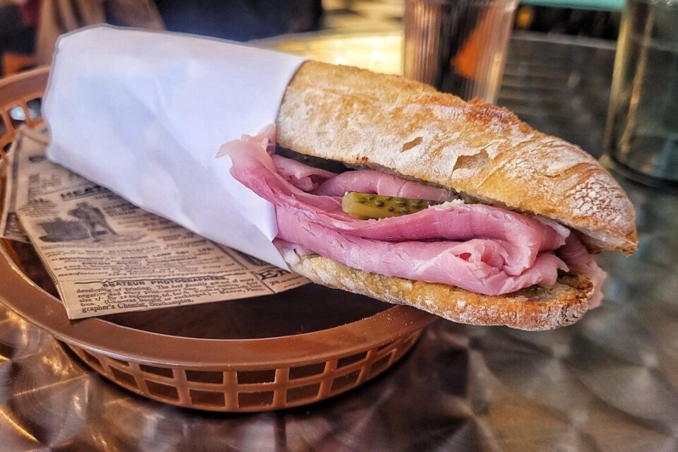 Jambon de la charcuterie Sauvage, porcs et poulets élevés dans le Gers, et une baguette façonnée par La Halle aux Pains, avec un vrai quignon aux extrémités, pour un côté campagnard et généreux assumé. Les recettes, elles, naissent au gré des étals sur le marché Saint Aubin, et des demandes des clients. Elles composent une carte courte, amenée à évoluer, notamment avec un nouveau sandwich du moment à découvrir chaque mois. Dernièrement, le Vitello Tonnato avec noix de veau rôties, sauce thon, pickles de betterave, anchois et câpres.nd pour les voyageurs pressés.