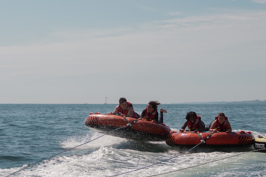 Bouée tractée avec Anthony. Nos filles de 12 et 15 ans ont adoré. Il fait aussi bien attention en fonction des peurs de chacun. Notre neveu de 12 ans n'était pas rassuré et a pu s'arrêter sans souci. Attention aux bobos dus aux frottements aux coudes malgré les combis, mais rien de méchant ! Au top.